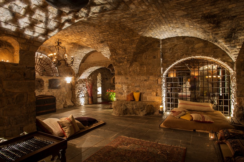 There are only single rooms and none of them has a phone, a fridge-bar or a tv. There is not even need for air conditioning thanks to the thick stone walls which favor a pleasant temperature inside. The structure itself combines and blends the most advanced green building techniques with ancient materials: a photovoltaic system provides 100% of the electricity consumption for the entire hotel. The main lighting after sunset is given almost exclusively by torches and candles.