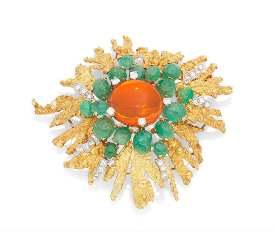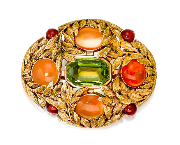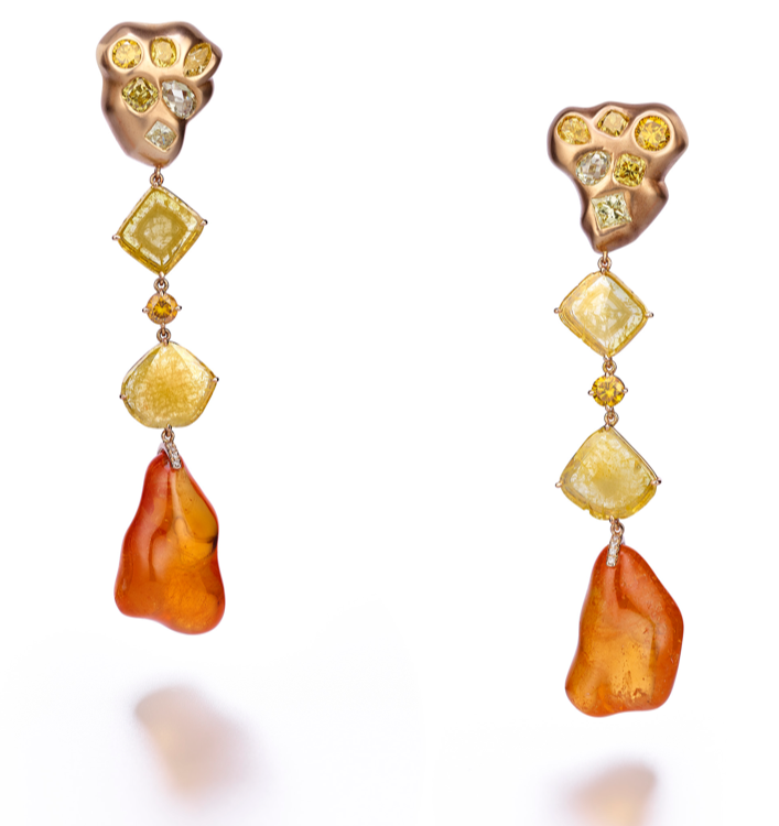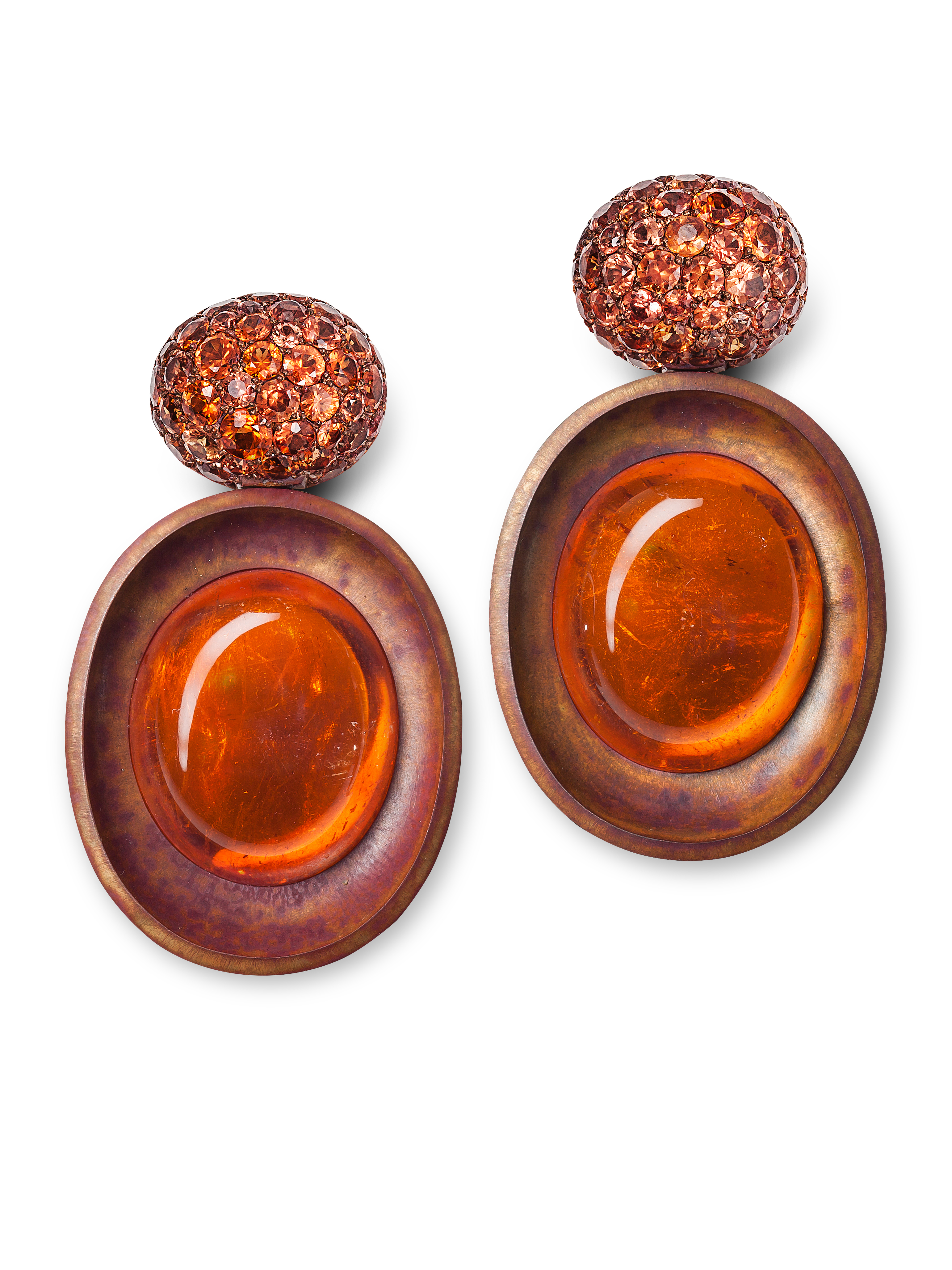 What is your favorite season? Mine is fall, color-wise. Let me take the advantage of being an editor to share a selection of jewelry pieces that represent fall motifs and demonstrate the variety of warm-shade gems.