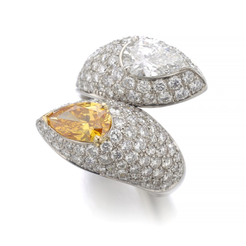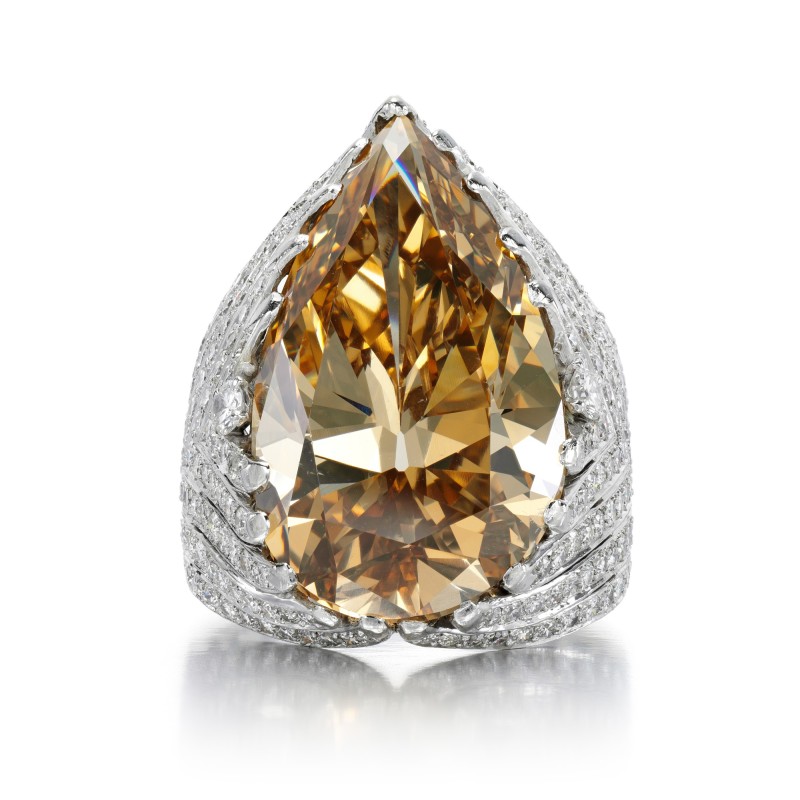 Yellow is the second most common color for fancy diamonds, which makes them affordable. At the same time, some fancy yellow diamonds went under the hummer with the highest prices. For example, a 100.09 carat one “The Graff Vivid Yellow” was sold for a record 16.3mln$ in 2014 at Sotheby’s Geneva, becoming the most expensive yellow diamond ever sold at an auction.