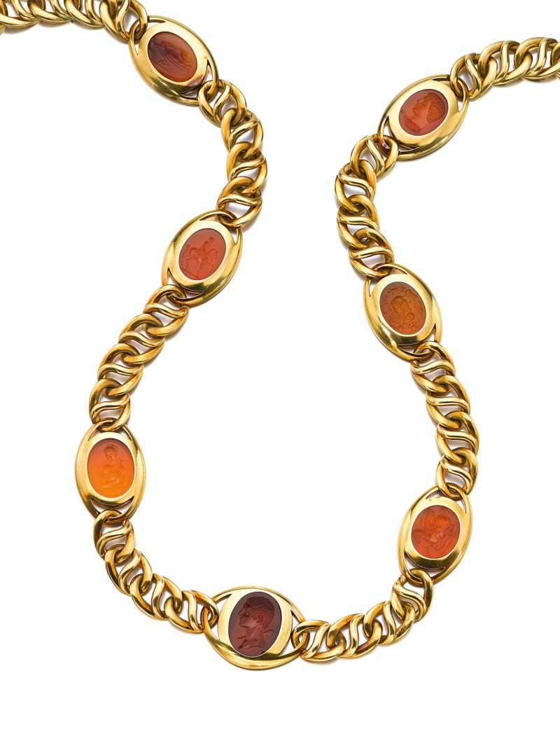 A similar color spectrum is typical for carnelian, the red variety of chalcedony. Carnelian (also spelled cornelian) has been known since ancient times. It was widely used during Roman times as a material for carved pieces, such as seal rings, or engraved gems. Carnelian can be heated to enhance the intensity of the redness of its color, and even the heat of the Sun is sometimes enough to enrich the final result.