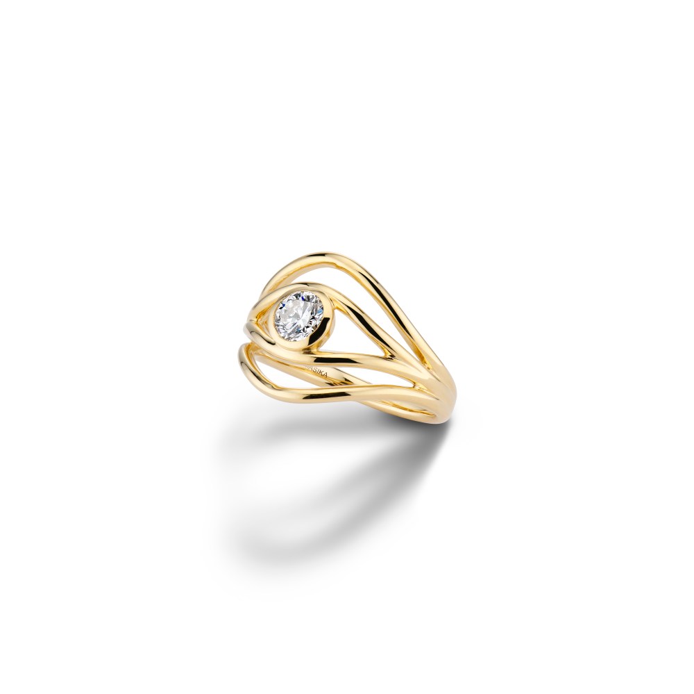 The pieces ALMASIKA creates are sculptural but organic, it’s this same ethos I brought to the Serene ring. It’s a lyrical interpretation of love, I was inspired by two streams of water flowing and enveloping a rock forming an infinite energy embodied by the diamond. I want this ring to evolve with the person wearing it, to convey this idea of an infinite energy, a forever bond.