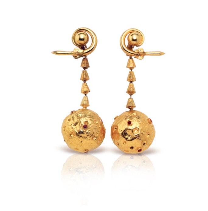 These Apollo earrings were given as a present by Aristotle Onassis to his wife Jacqueline Kennedy Onassis to celebrate both the Moon landing and her 40th birthday.
