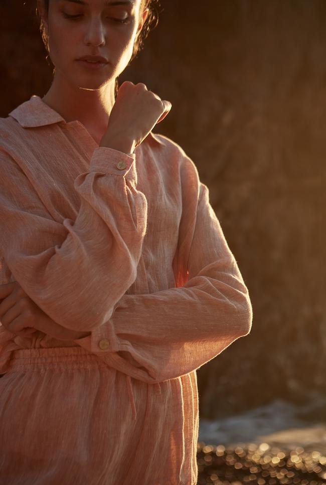 The brand took inspiration from Egypt for “Lin de Voyage” collection, delved deeper into the origins of flax, and gave the collection a desert feel. The highest quality Italian linen was used for Lin de Voyage and the collection was designed and created in Paris in Le Kasha atelier. This collection is a complete summer wardrobe.