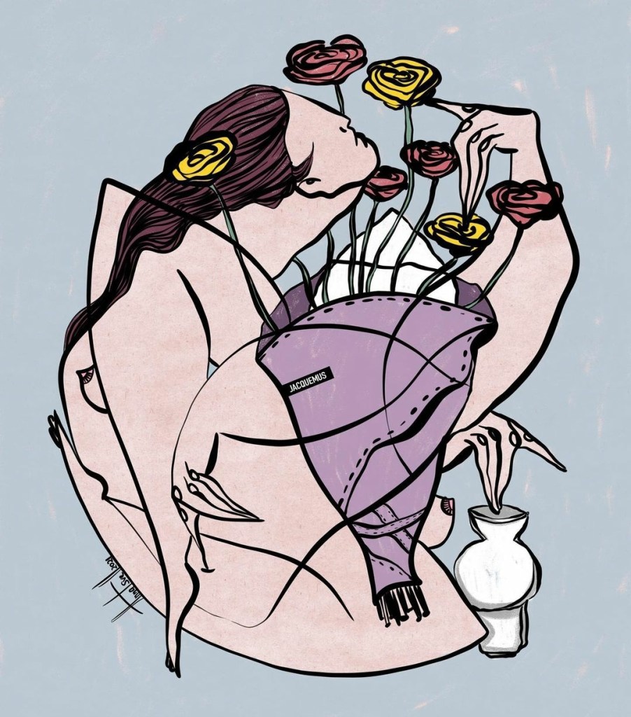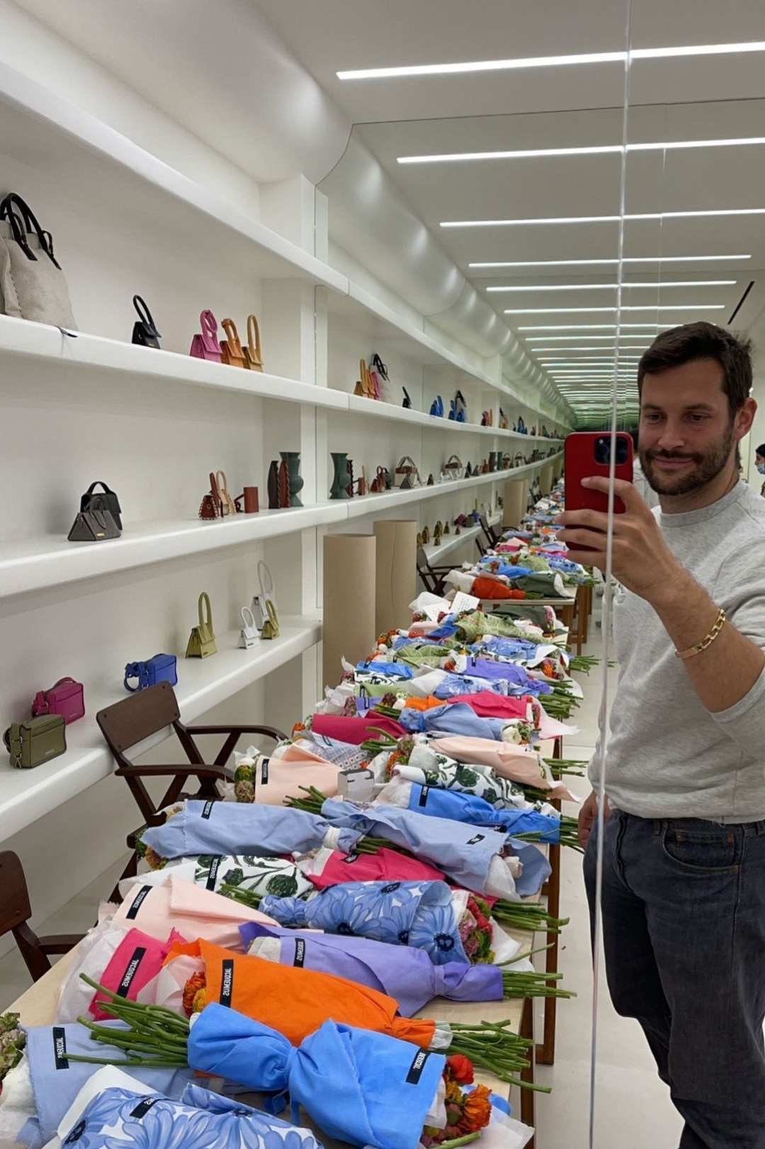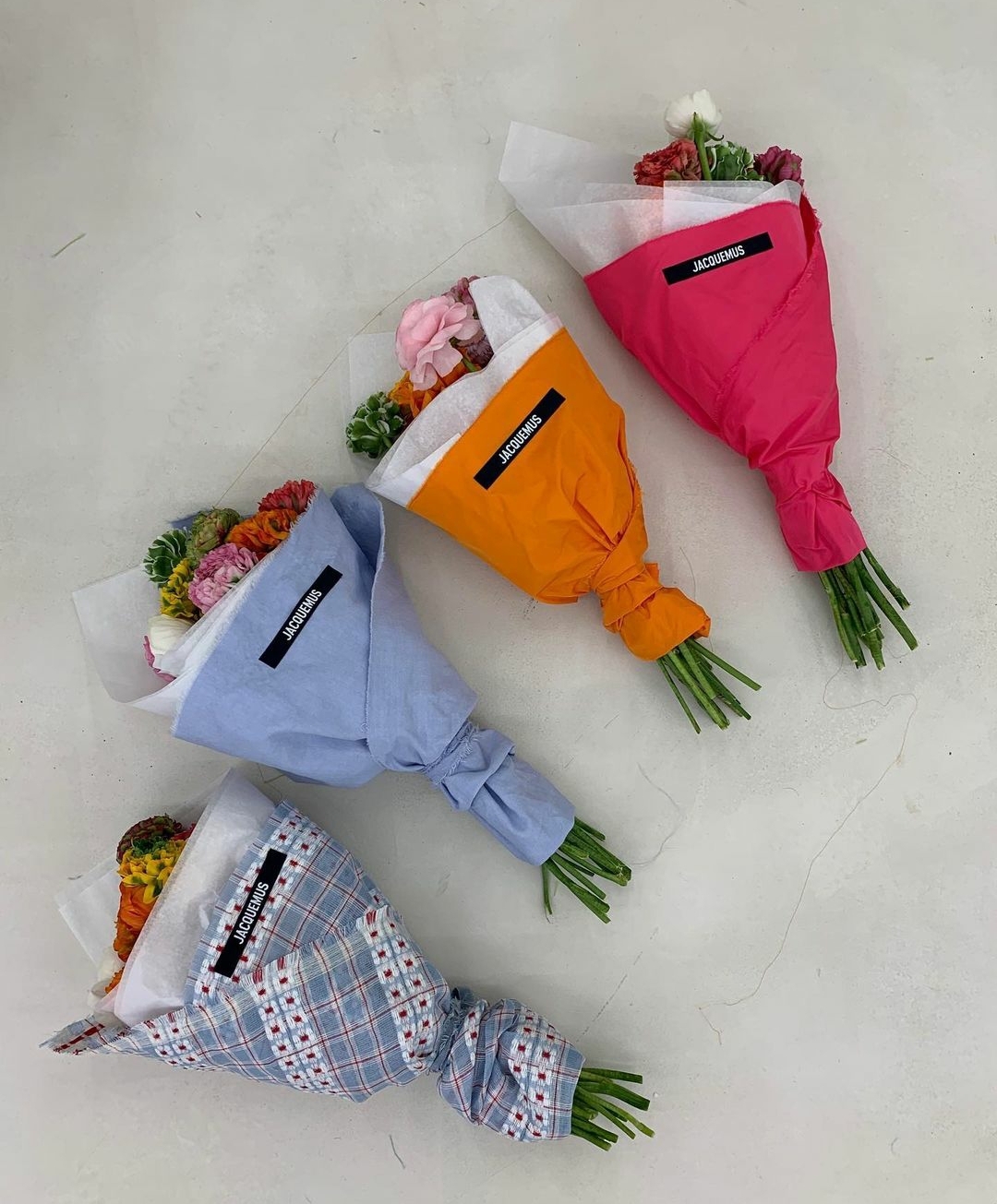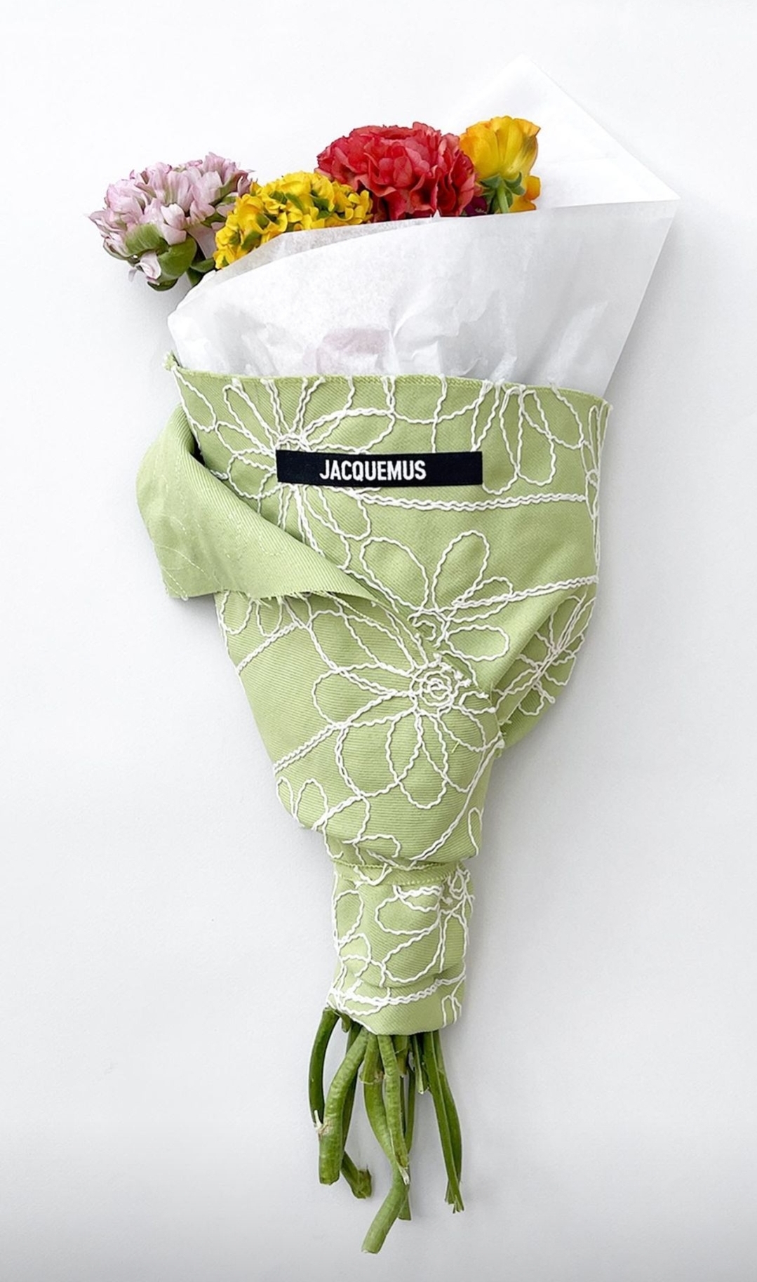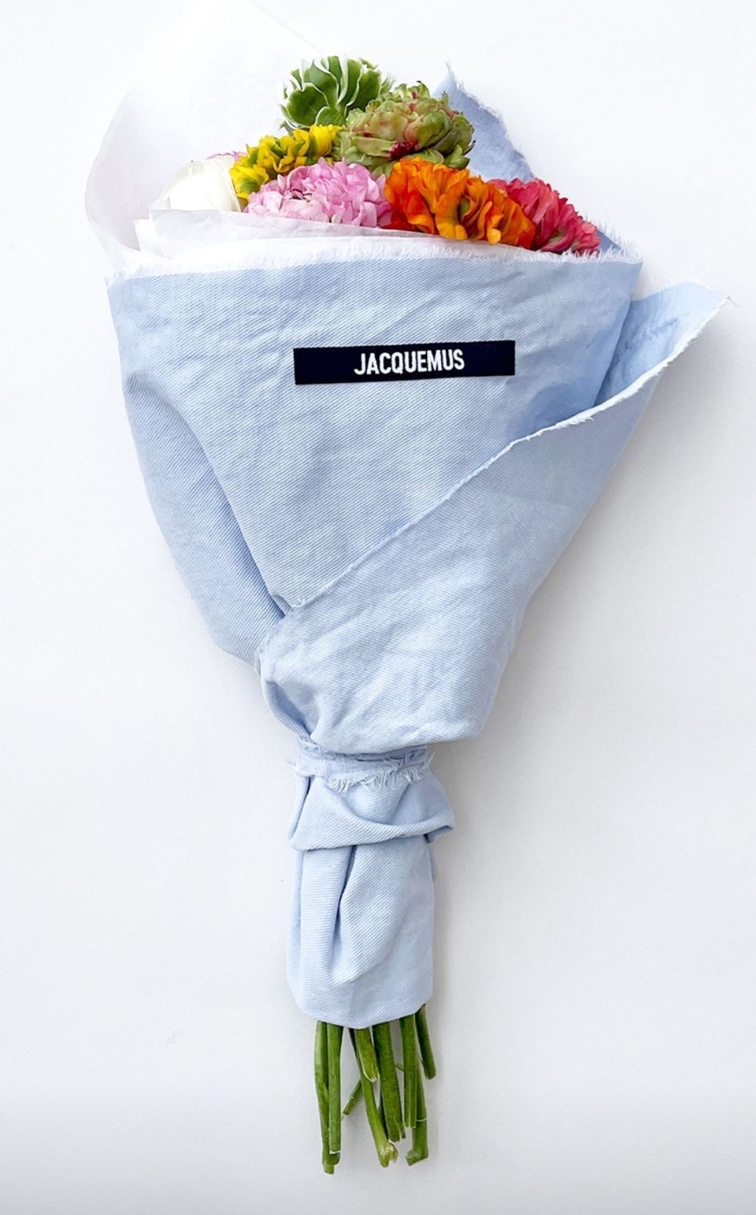 Together with a family-owned company of seasonal flowers – Les Fleurs de Paul, from the south of France, Simon creates beautiful bouquets by wrapping in leftover fabrics from his previous collections of Jacquemus. This way each bouquet will be unique and the fabric is going to be recycled.
