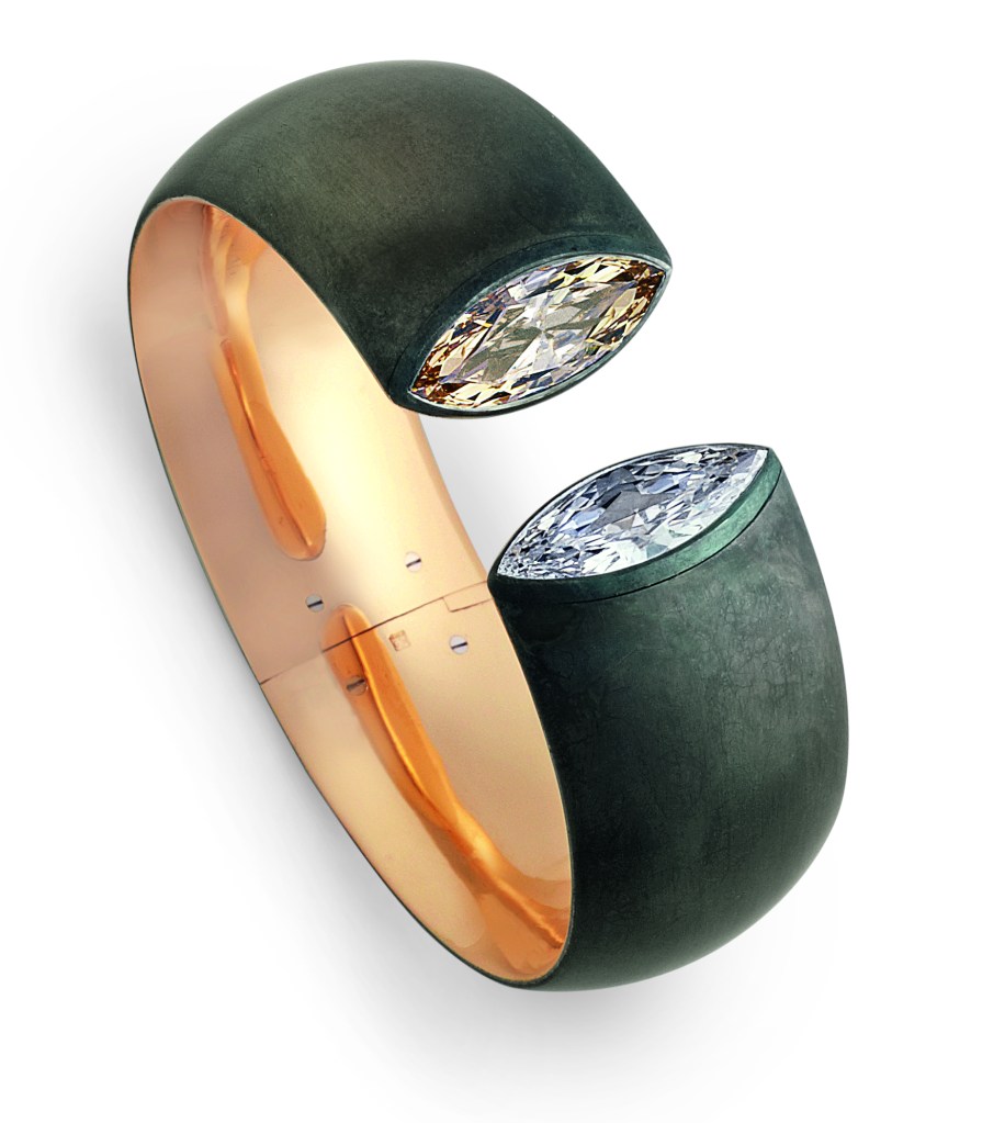 Keeping the same “body” allowed Hemmerle to never stop playing with “clothing” it: from traditional gold and diamonds to unorthodox iron, copper, pebbles, and aluminum – Harmony tried on everything.