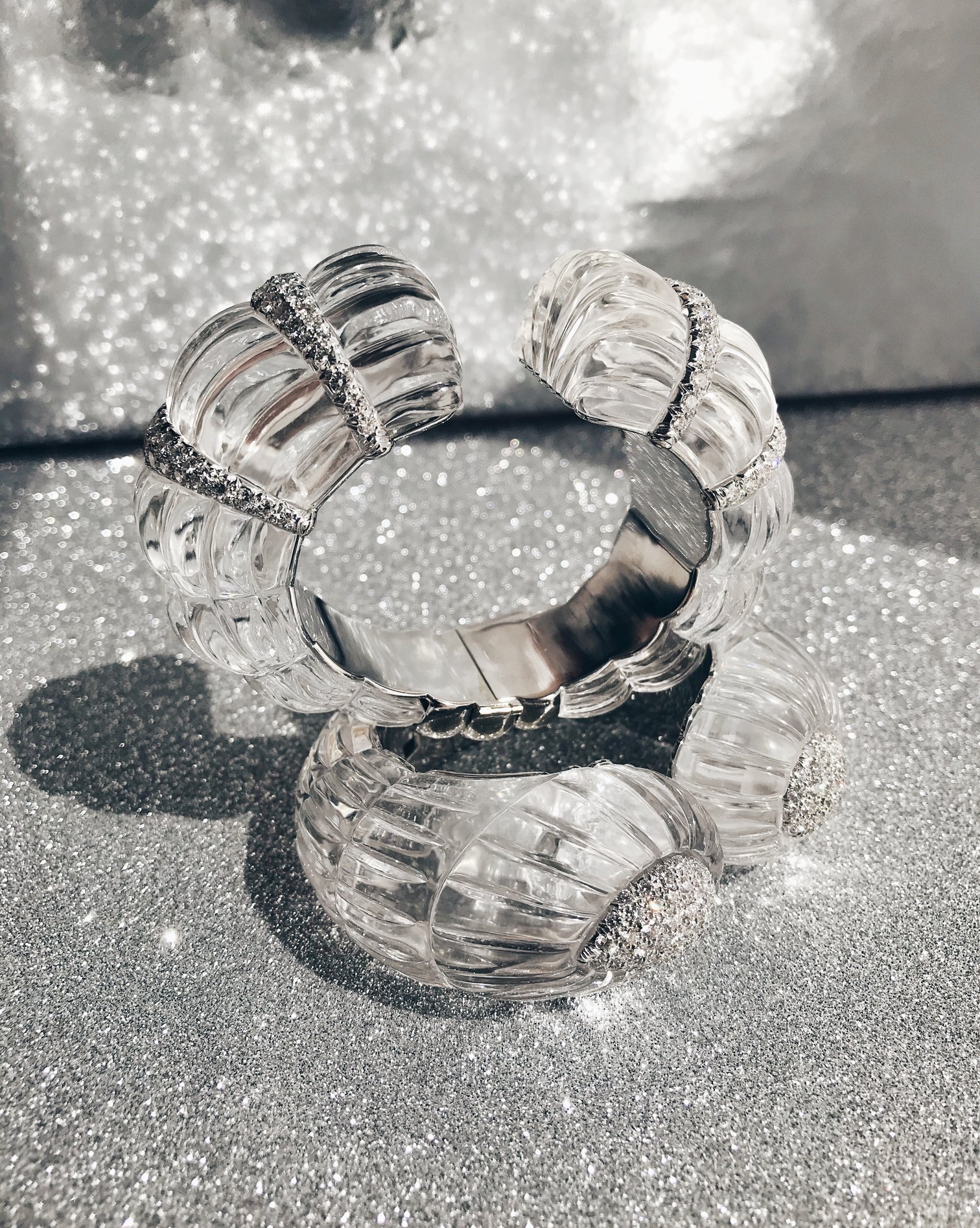 Of all the high-end jewelry Maisons, none has ever used rock crystal as much as David Webb. Carved or polished, combined with precious gems or enamel, surrounded by colors or kept monochrome – the variety of rock crystal pieces is impressive. Twilight ornaments are not as bold as his colored pieces, which make them an option for those who are not ready to jump into striking color combinations yet. Rock crystal, the transparent type of quartz, can be seen as an alternative to diamonds artistically-wise: it’s transparent, colorless, and glowy. Unlike diamonds, rock crystal is easy to cut and carve, and there are no strict rules to follow in it. This freedom allows a designer to create any game of light and reflections they want. Though diamonds are diamonds, and they are not missing. Almost every piece in the Twilight series is set with colorless diamonds next to rock crystal.