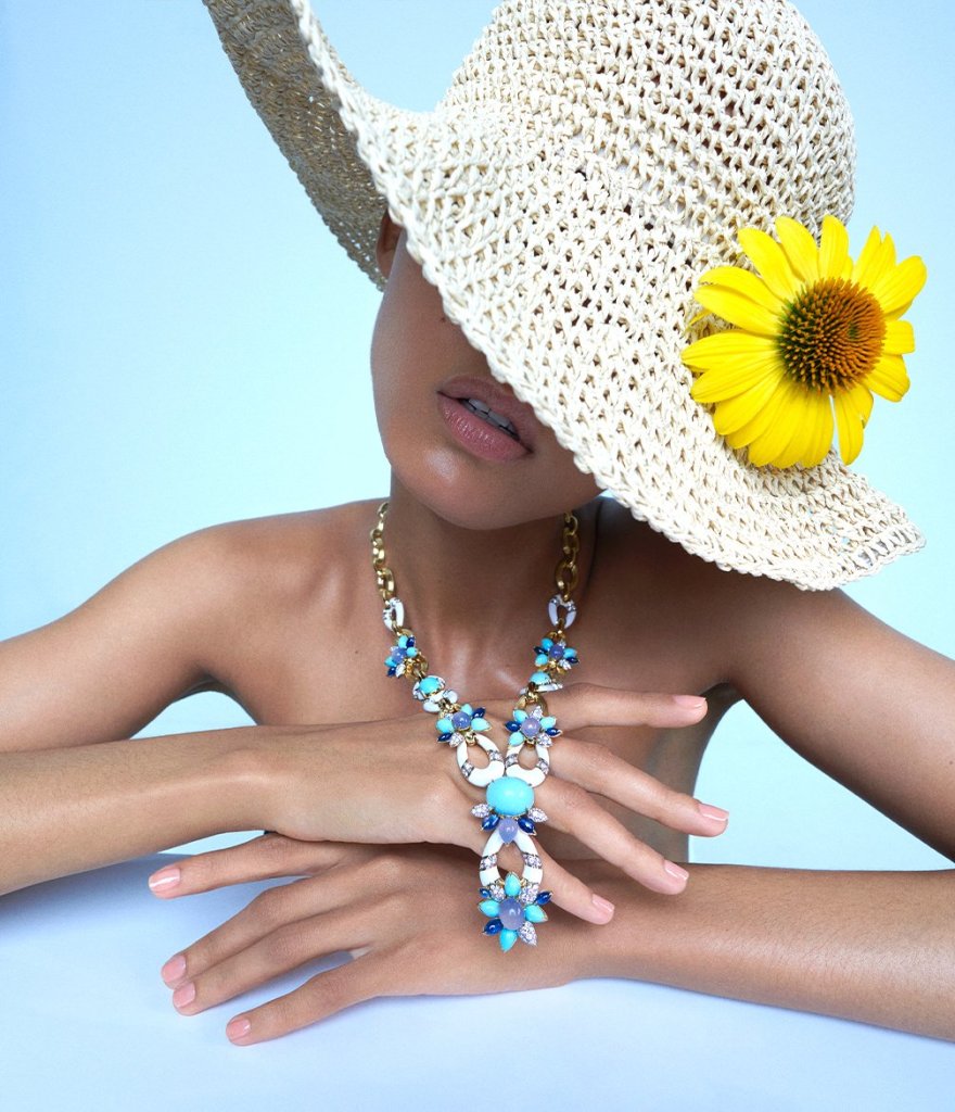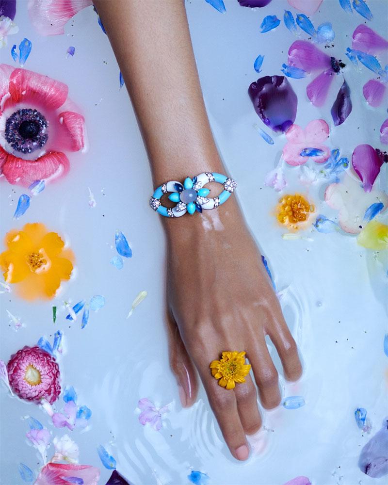 Let’s hold on a second, though. It is the same old Webb, just a bit in disguise. Behind naive flowery designs, there are many key elements of Maison’s style: white enamel, bright colors, big – really big – pieces, and recognizable silhouettes of necklaces and doorknockers.