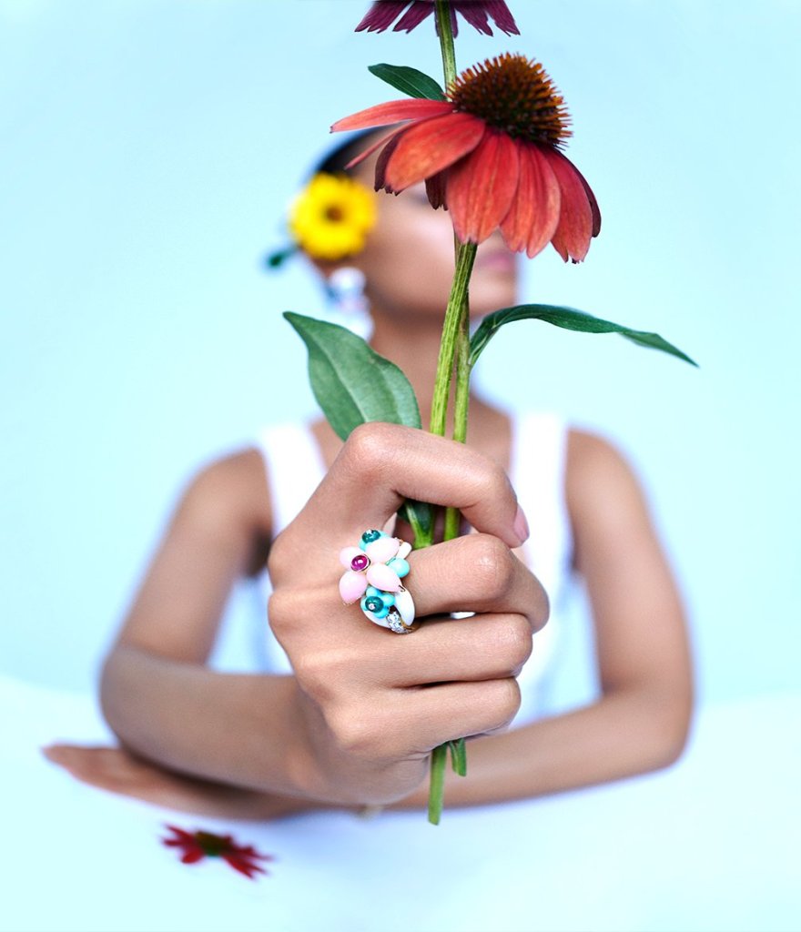 Bewildering at first sight; it might look as if the new pieces have nothing in common with David Webb’s aesthetic: pastel colors, girlish designs, flowers. A resounding “What’s going on!?” could well sum up much of the fan’s gut feeling.