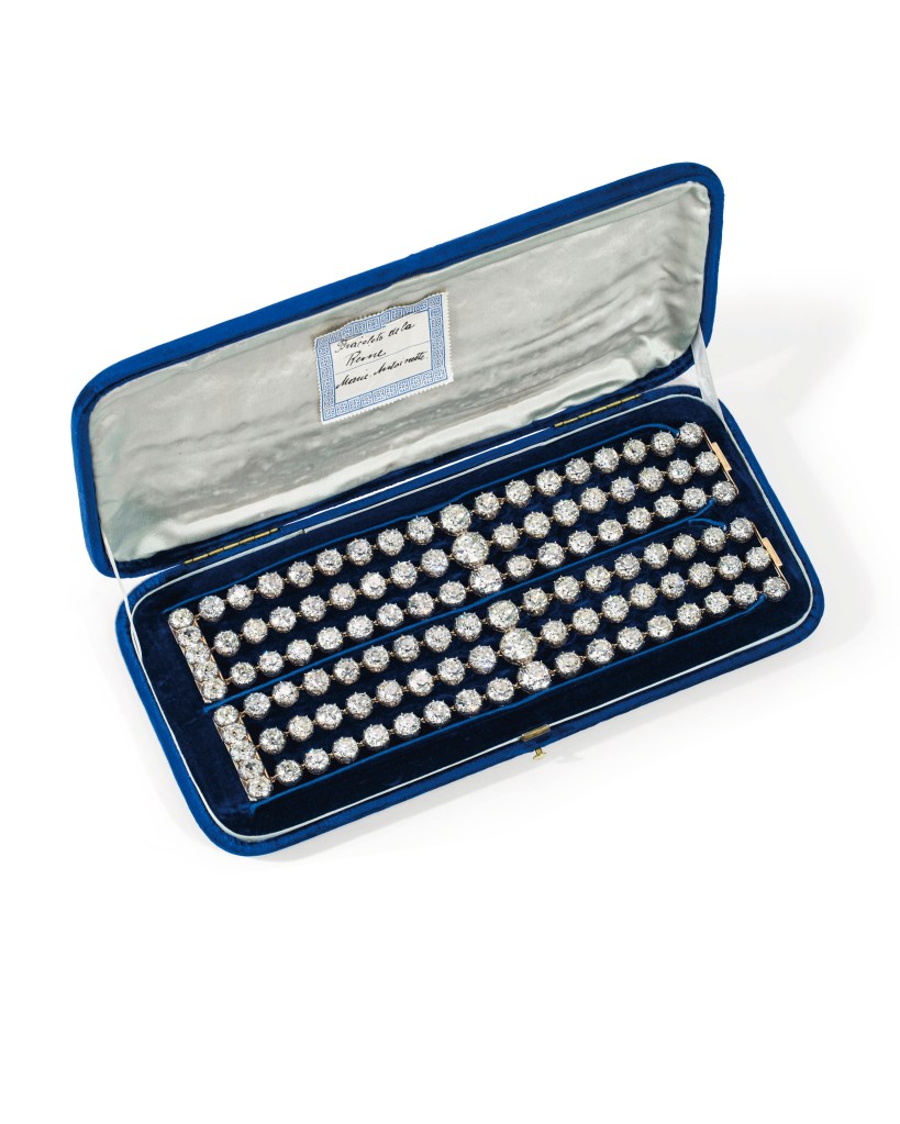 Also, it’s astonishing how modern these bracelets are, aren’t they? Put them on with a white shirt and a pair of blue jeans, and who would ever think that you are wearing Marie Antoinette’s jewelry. Well, after the auction many will, of course. I think you understand what I mean.